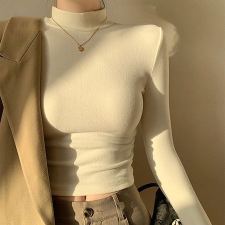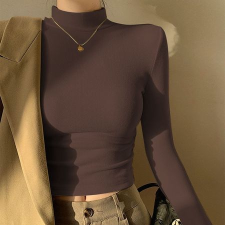 Half Turtleneck Bottoming Shirt Women Velvet Stand Collar Slim Fit T-Shirt