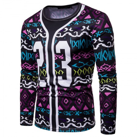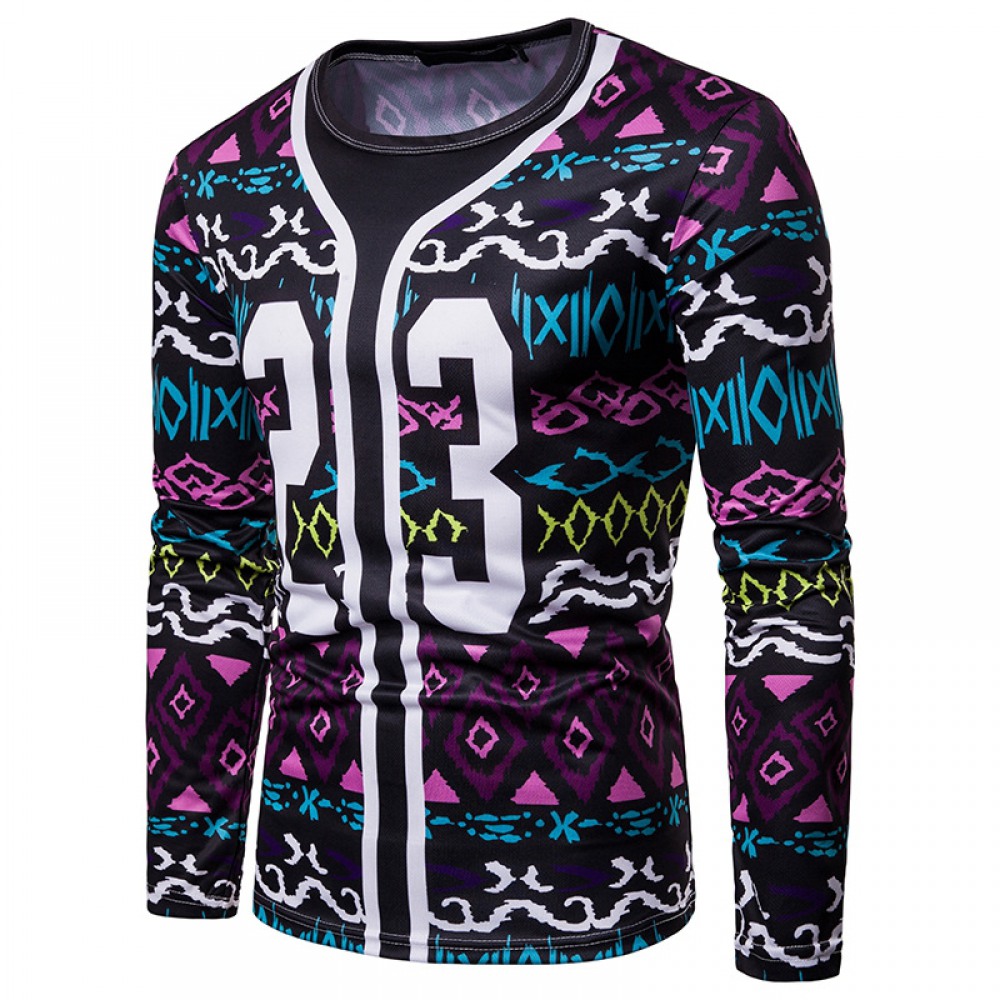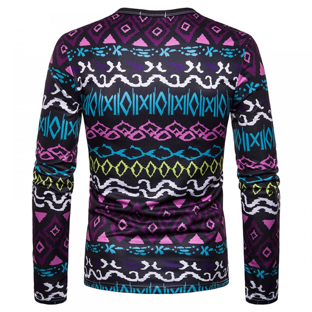 Men's Fashion Wave 3D Digital Printing Round Neck Long Sleeve T-Shirt