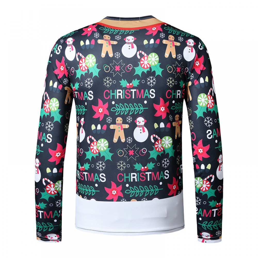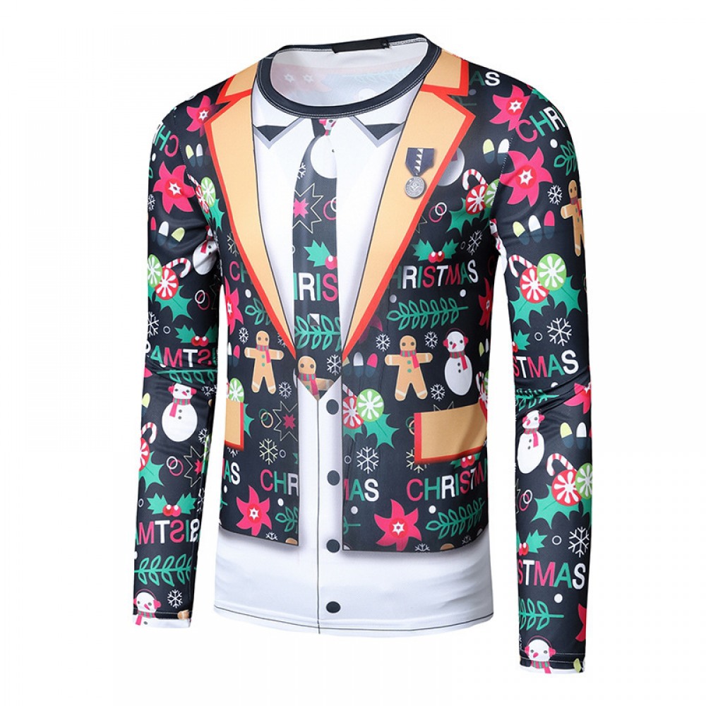 New 3D Personality Fake Two-Piece Printing Fashion Men's Christmas Long-Sleeved T-Shirt