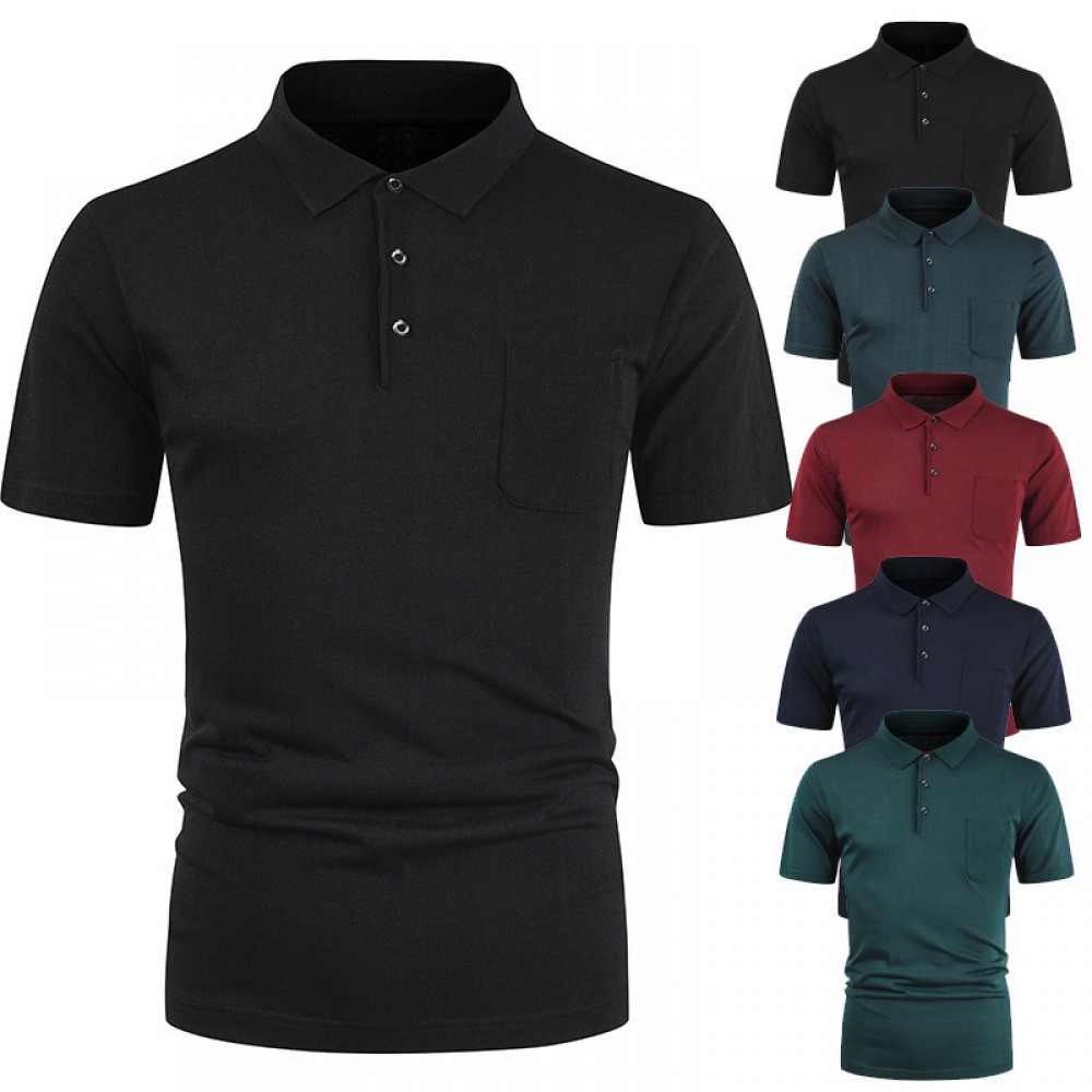New Fashion Men's Pullover T-Shirt Youth Solid Color Pocket Lapel T-Shirt Men